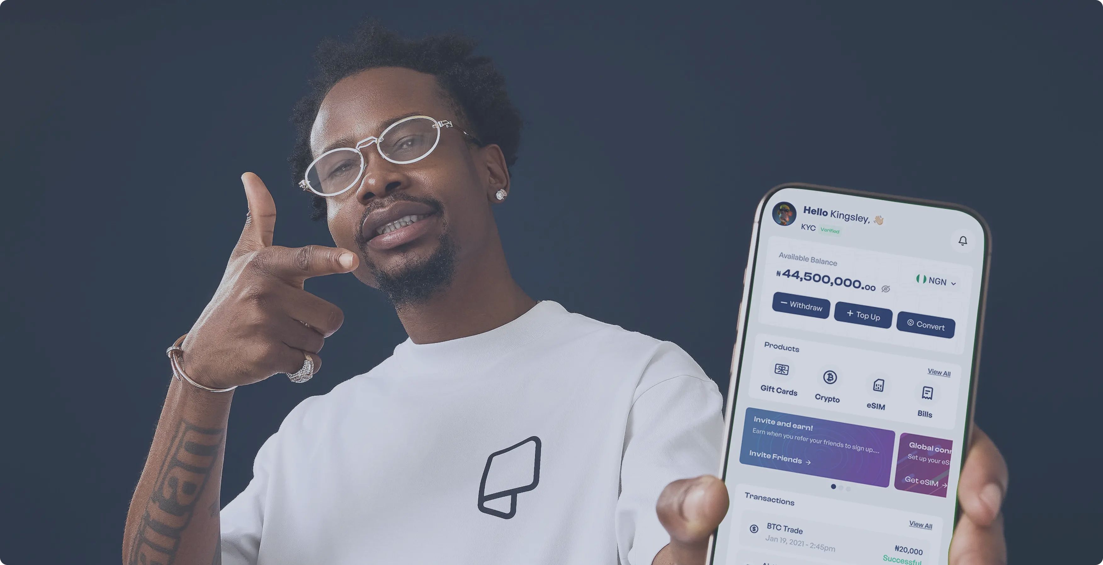 One platform. Everything you need — crypto, gift cards, eSIM, airtime, and bills. The best part is, you can pay or be paid in Naira, Cedis, or Crypto.