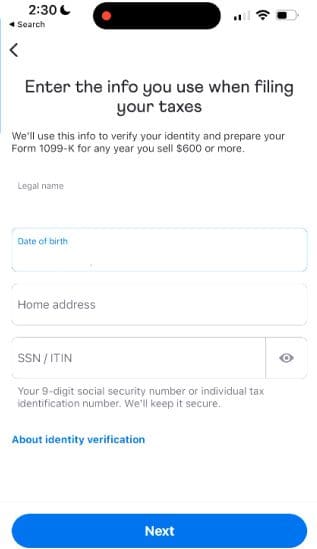 In addition, you must provide your legal name, birth date, address, SSN, or individual tax identification number (ITIN) for identity verification. You can optionally add your business website and contact information to your profile so new and existing customers can learn about your business.