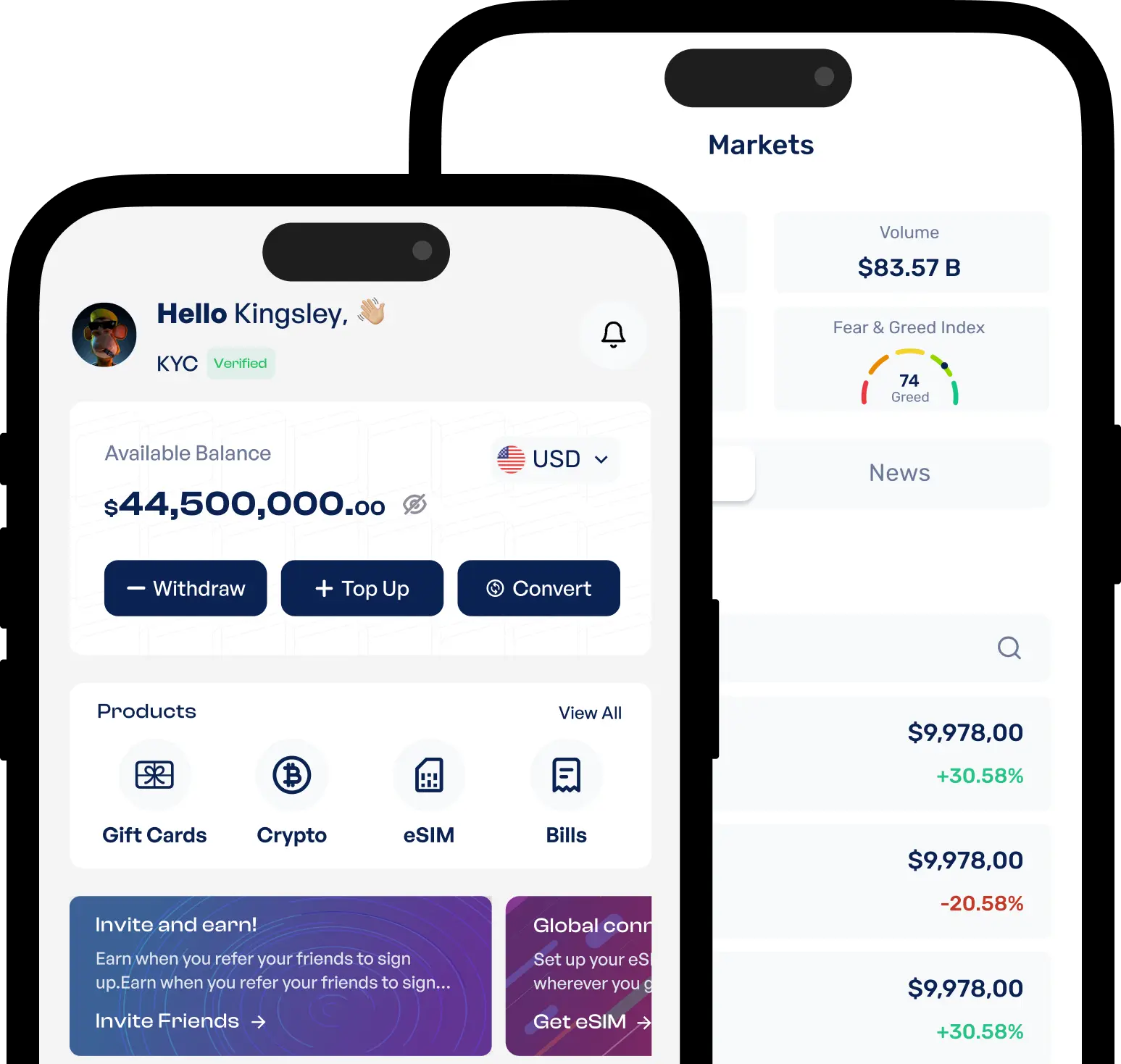 One platform. Everything you need — crypto, gift cards, eSIM, airtime, and bills. The best part is, you can pay or be paid in Naira, Cedis, or Crypto.